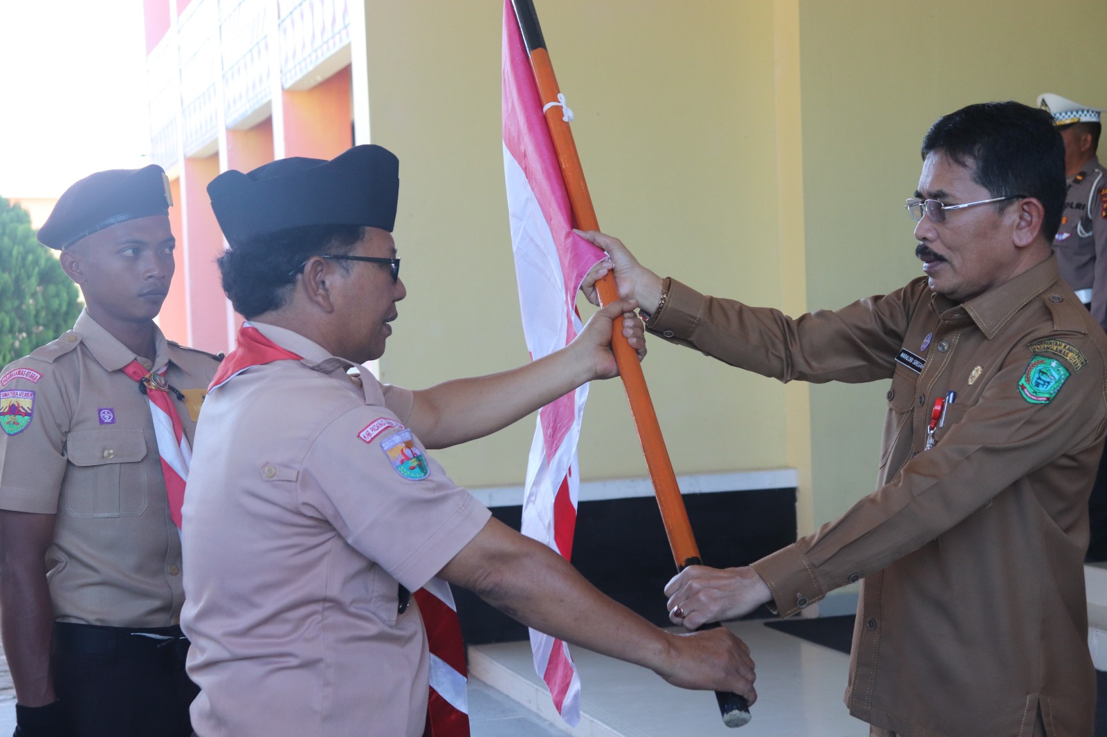 Bupati Padang Lawas Utara (Paluta) Andar Amin Harahap SSTP MSi diwakili Asisten III Maralobi Siregar SSos MM melepas Kontingen Gerakan Pramuka Kwartir Cabang (Kwarcab) Kabupaten Paluta menuju Raimuna Daerah Tingkat Provinsi Sumatera Utara ke VIII Tahun 2023, Selasa (27/06).