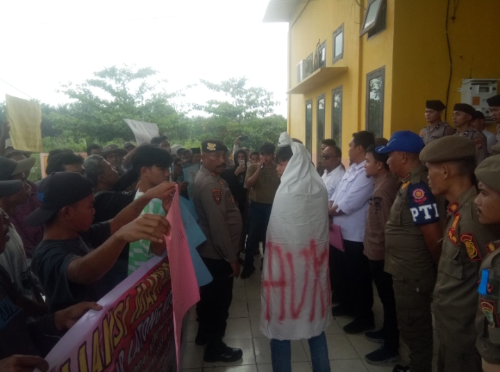 Masyarakat yang mengatasnamakan Solidaritas Aktivis Mahasiswa Padang Lawas (Sampal) bersama sejumlah warga Desa pasar Latong Kecamatan Lubuk Barumun Kabupaten Padang Lawas melakukan unjuk rasa (Unras) didepan Kantor Inspektorat Kabupaten Padang Lawas, Rabu 12/ 07/2023.
