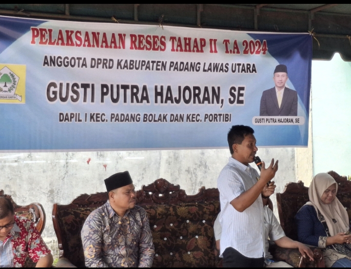 PALUTA - Anggota DPRD Kabupaten Padang Lawas Utara dari Fraksi Golkar Gusti Putra Hajoran Siregar SE menggelar Reses tahap II Tahun Anggaran 2024 yang berlangsung di Desa Sigama dan Desa Hajoran Kecamatan Padang Bolak,pada Jumat(27/12/2024).