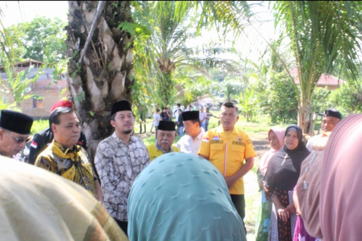 PALUTA - Calon Bupati Padang Lawas Utara Haji Reski Basyah Harahap di damping Tim Pemenangan Horas Kabupaten Padang Lawas Utara Sambangi Petani Bawang merah yang tergabung dalam Kelompok Tani Bersatu Desa Sunggam Tonga Kecamatan Padang Bolak Tenggara, Kamis.(19/09/2024).