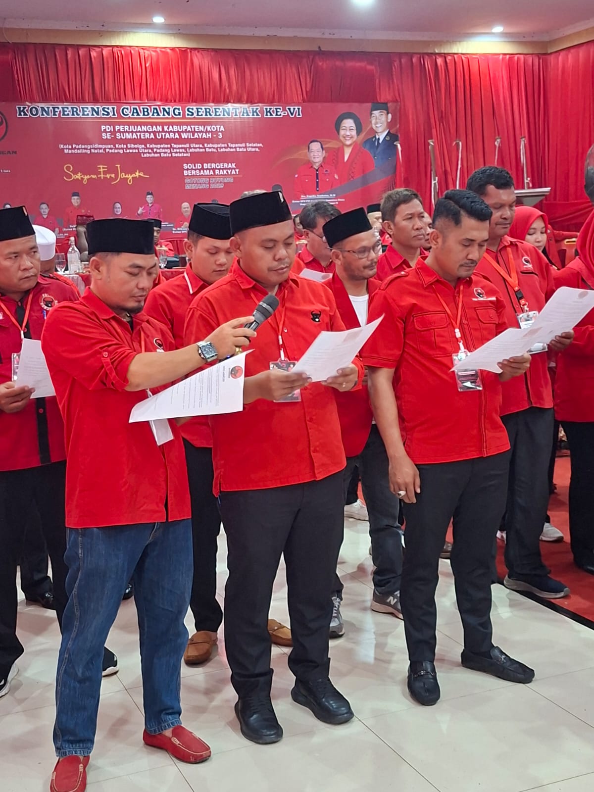 Pengumuman Ketua DPC terpilih dilakukan dalam Konferensi Cabang (Konfercab) ke-VI PDI Perjuangan Zona III Sumatera Utara yang digelar di Gedung Adam Malik, Kota Padangsidimpuan, Selasa (16/12/2025).