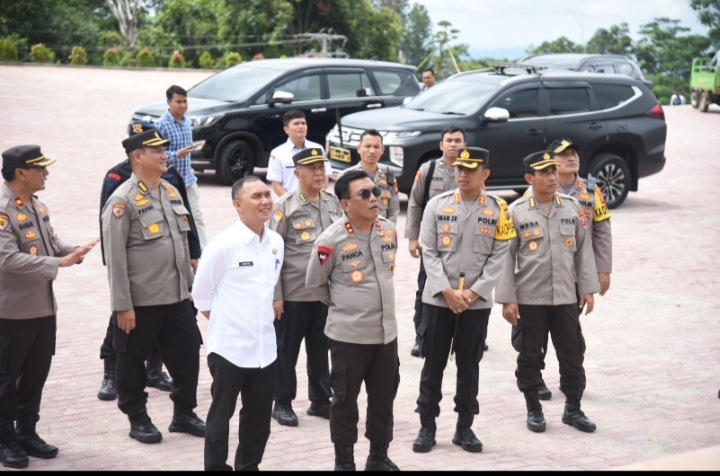Kapolres, AKBP Imam Zamroni, SIK, MH, dampingi Kapoldasu, Irjen Pol Drs RZ Panca Putera Simanjuntak, MSi, beserta rombongan guna meninjau bangunan Mako Polres Tapanuli Selatan (Tapsel) yang baru di Kecamatan Sipirok, Rabu (12/7/2023) siang.