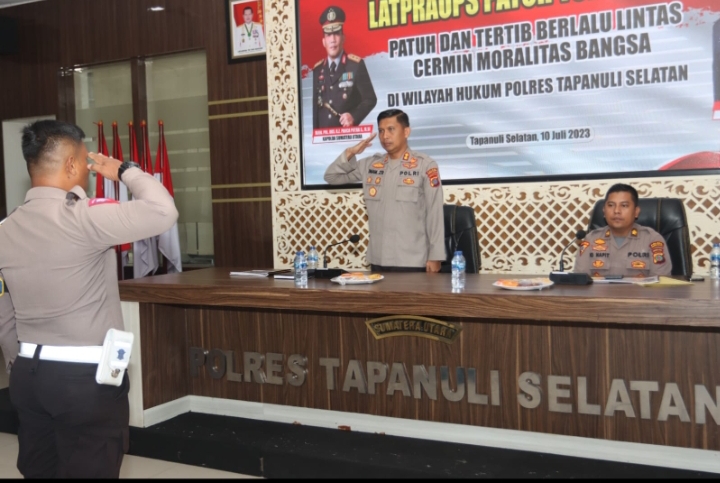 Kapolres, memimpin Lat Pra Operasi Patuh Toba 2023 yang mengusung tema, “Patuh dan Tertib Berlalulintas, Cermin Moralitas Bangsa” itu, dari Aula Pratidina Mako Polres Tapsel. Turut hadir juga, Kabag SDM Polres Tapsel, AKBP Bumbunan Lumbanraja.