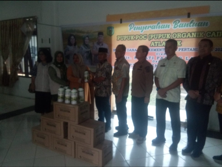Pelaksana Tugas (Plt) Bupati Padang Lawas drg H.Ahmad Zarnawi Pasaribu cht MM MS.i. MH serahakan Pupuk Organik Cair (POC) Atlantik, secara simbolis kepada Kelompok Tani Se kabupaten Padang Lawas.