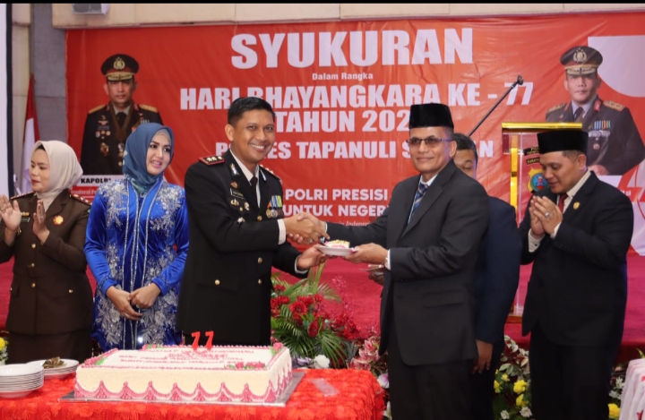 Polres Tapanuli Selatan menggelar upacara peringatan Hari Bhayangkara Ke- 77 Tahun 2023 di Lapangan Parade Kantor Pemerintah Kabupaten Tapanuli Selatan, Jalan Prof. Lafran Pane, Sipirok Kecamatan Sipirok Kabupaten Tapanuli Selatan, Sabtu (01/07/2023).