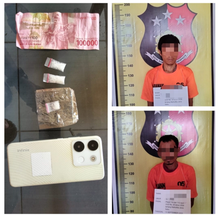 “Lalu, kami mengamankan salah seorang pelaku yakni inisial, HS di Warung. Dari HS ini, kami dapatkan padanya 2 bungkus plastik klip transparan ukuran kecil berisi sabu. Kemudian, uang tunai Rp100 ribu. Dan satu unit Handphone warna putih,” imbuhnya.