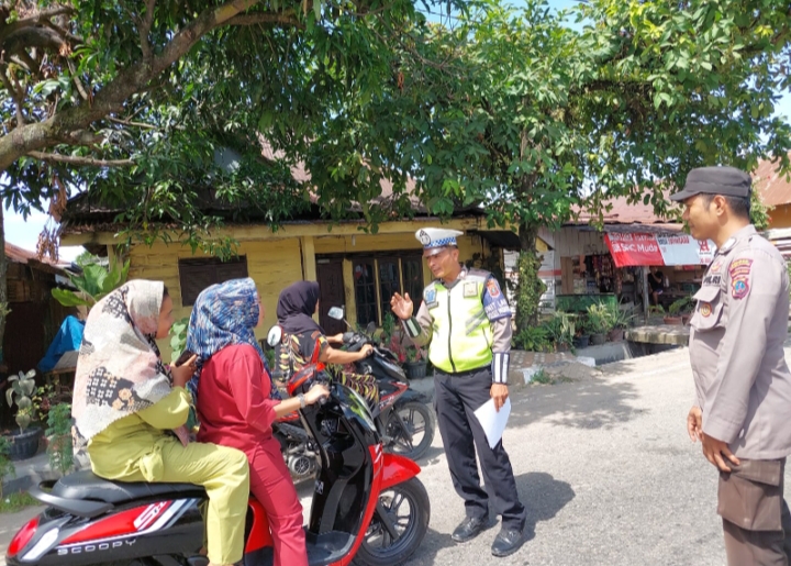 Para pengendara sepeda motor itu kena tegur, saat personel Pos Lantas Padang Bolak tengah menggelar Operasi Patuh Toba 2023.