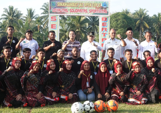 PALUTA - Penjabat (Pj) Bupati Padang Lawas Utara Patuan Rahmat, S.STP., MM., membuka Turnamen Sepak Bola Simangambat Jae Cup II yang mengusung tema "Loyalitas, Solidaritas, Sportifitas" di Lapangan Sepak Bola Tuara (Turunan Anak ni Raja) Simangambat Jae, Jumat (14/06/2024).
